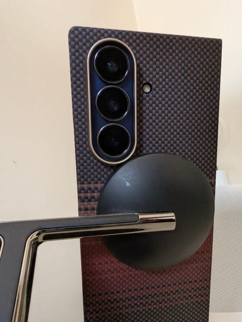 Unlike the Pixel Fold, the Samsung Fold does not have MagSafe support 😢, so a case is required to add MagSafe support, which adds to the bulk of the device. This factor is an important consideration because 90% of the time, I use my phones (including foldables) without a case, in their naked form. Recently, I came across the Pitaka carbon fibre cases, and they feel great and are lightweight. I still like to carry my devices caseless.