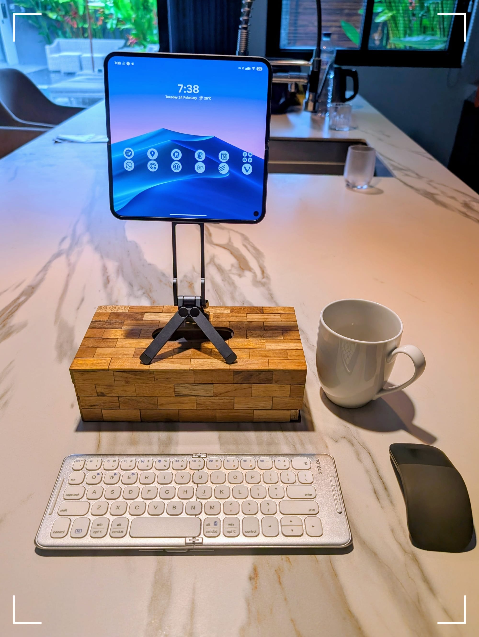 I feel like a Gangstar blogging with the above setup. As we speak, I am writing this blog from the kitchen in my Airbnb. The Ulanzi stand is propped up on a tissue box and the pixel fold is unfolded providing me with a larger canvas to write this blog. The MagSafe support in this year's Pixel phones is a great addition, something that Samsung Fold 7 does not have.